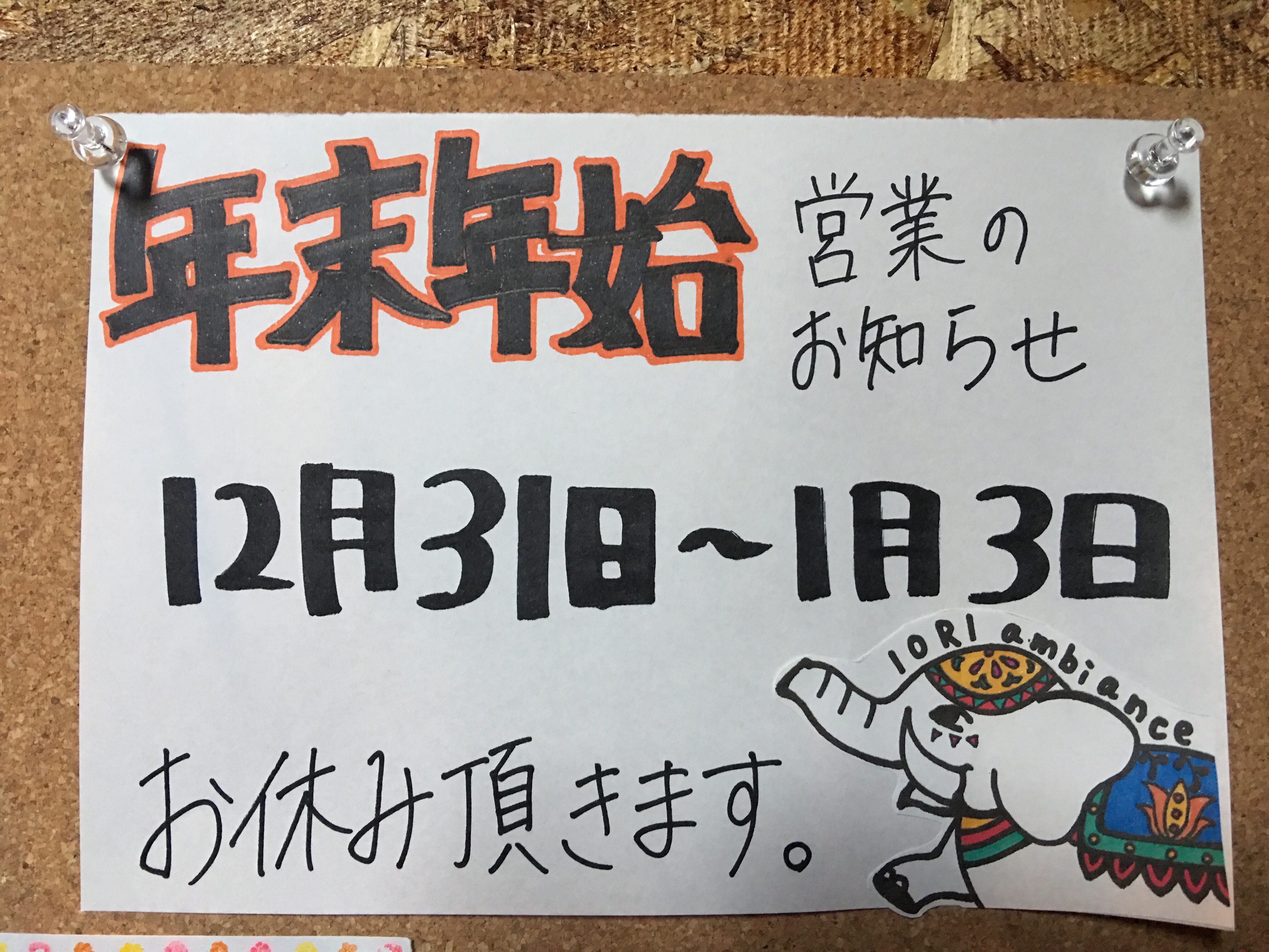 12月31日〜1月3日までお休みさせて頂きます。