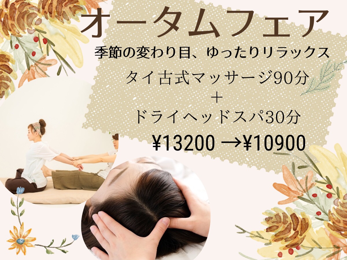 タイ古式マッサージ90分+ドライヘッドスパ30分 計120分